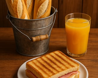 Desfrute de um delicioso café da manhã preparado com ingredientes frescos e saborosos.